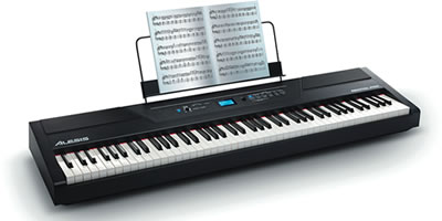 Alesis Recital Pro è un pianoforte digitale con una tastiera 88 tasti hammer-action di dimensioni standard (full-size) con risposta al tocco programmabile dall’utente e polifonia di 128 note.